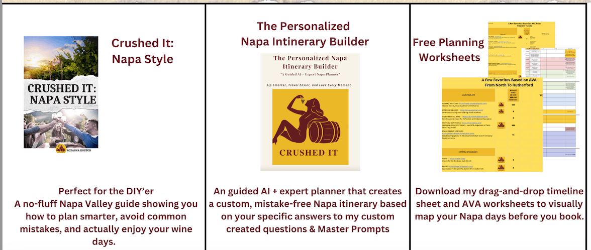 Everything I create is designed to help you sip smarter, travel easier, and leave Napa with great memories — not regrets.